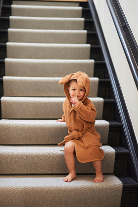 Un peignoir en tissu éponge est toujours pratique pour ton tout-petit. Le peignoir est parfait pour être utilisé après un bain, une douche ou une baignade. Le tissu éponge doux absorbe facilement l’eau et garde ton enfant au chaud. La joyeuse capuche avec oreilles sèche facilement les cheveux. Le peignoir est également pratique à emporter en vacances ou lors d’une soirée pyjama. Le peignoir est doté d’un bouton pression pratique pour le maintenir fermé lorsqu’il est porté, d’un élastique dans le dos pour un ajustement parfait et la ceinture est attachée au peignoir pour que tu ne puisses pas la perdre. Le peignoir est disponible dans les couleurs : Sea Green, Ash Green, Biscuit, Caramel, Ivory, Jeans Blue, Nougat, Wild Rose et Pale Pink. Découvre également nos peignoirs rayés !