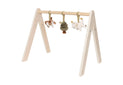 Ces jouets pour arche sont parfaits pour l’éveil sensoriel de bébé. Le set comprend un chat, un chien, un arbre et un arbre en velours, tous fabriqués en matières douces comme le bouclé et le tissu teddy. Les attaches à scratch et les rubans olive green apportent une touche ludique.