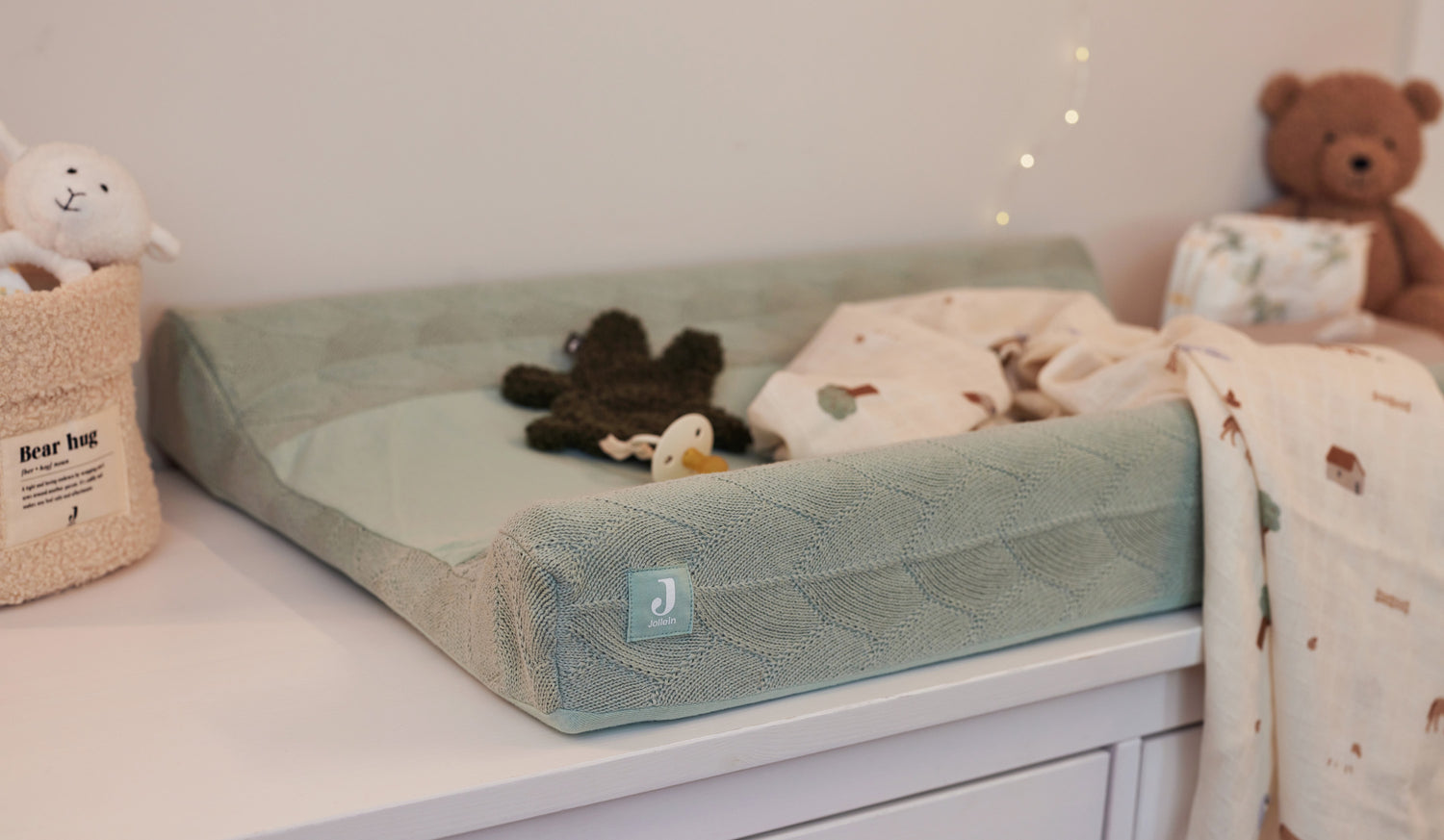 La housse du matelas à langer est fabriquée en 100% coton (GOTS).