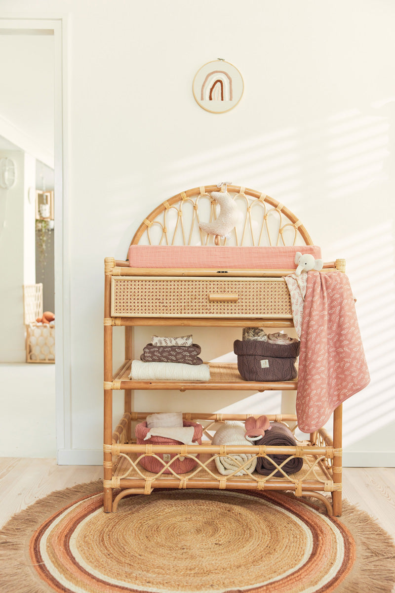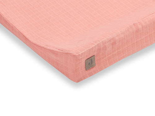 Cette jolie housse de matelas à langer est en gaze de coton imprimé de Jollein. La housse matelas à langer est composée de 100% gaze de coton. Disponible en gris, rose, nougat et marron. La taille de la housse matelas à langer est 50x70 cm.