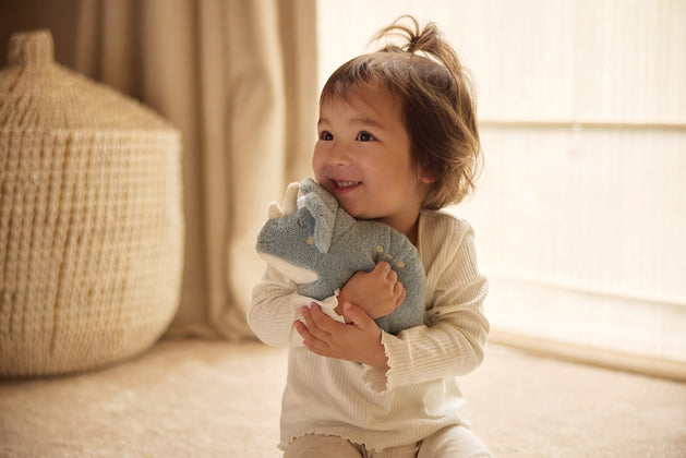 Wauw, welke stoere avonturier moet deze Dino echt bij zijn/haar collectie toevoegen? Deze Dino komt in een prachtig grijs blauw kleurtje met Ivory kleurige vlekjes en is heerlijk aaibaar. Je mini zal zich vast ook urenlang vermaken met deze leuke knuffel, want de oortjes zijn voorzien van een krinkel geluid! De knuffel heeft een extra tag mét palmboompje en dat maakt de knuffel natuurlijk nog interessanter. Maak thuis je eigen Jurassic Park met deze veel te lieve dino!