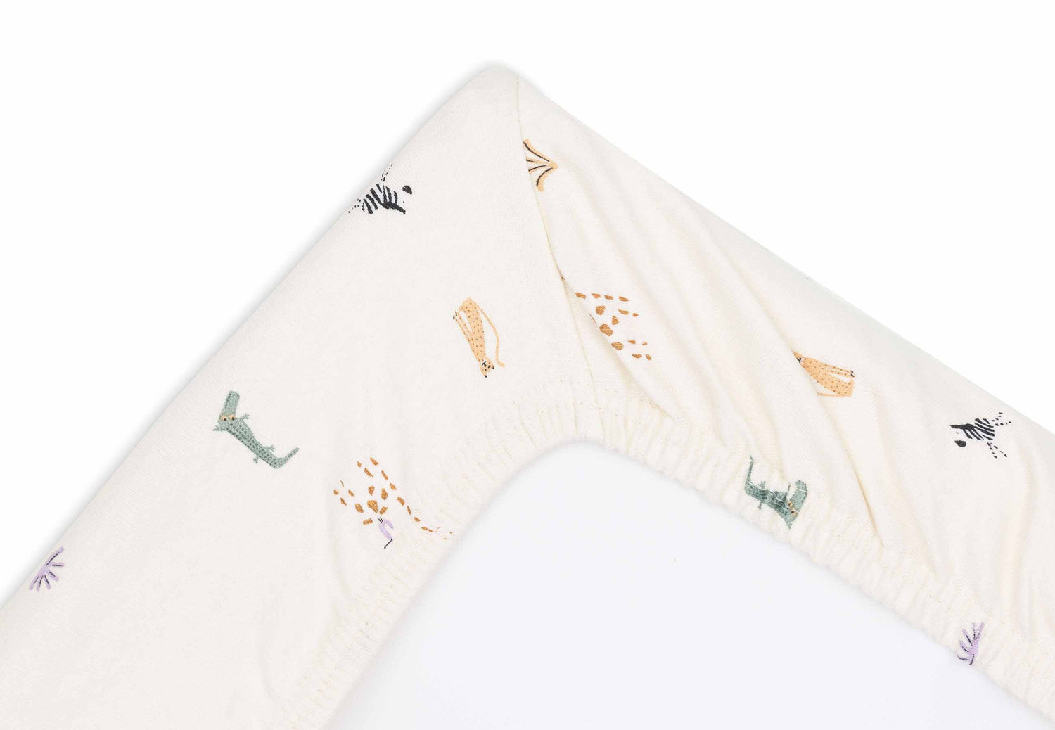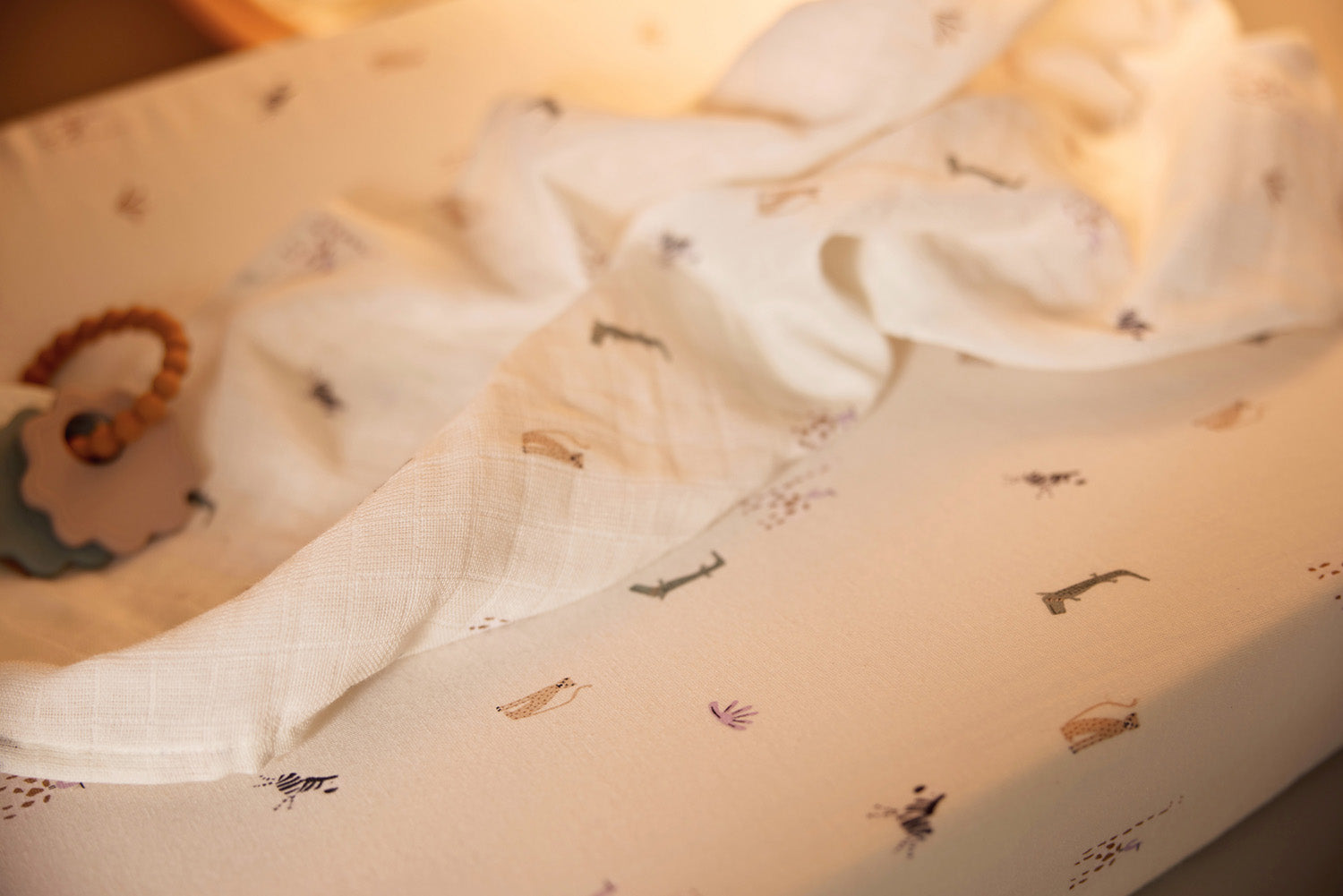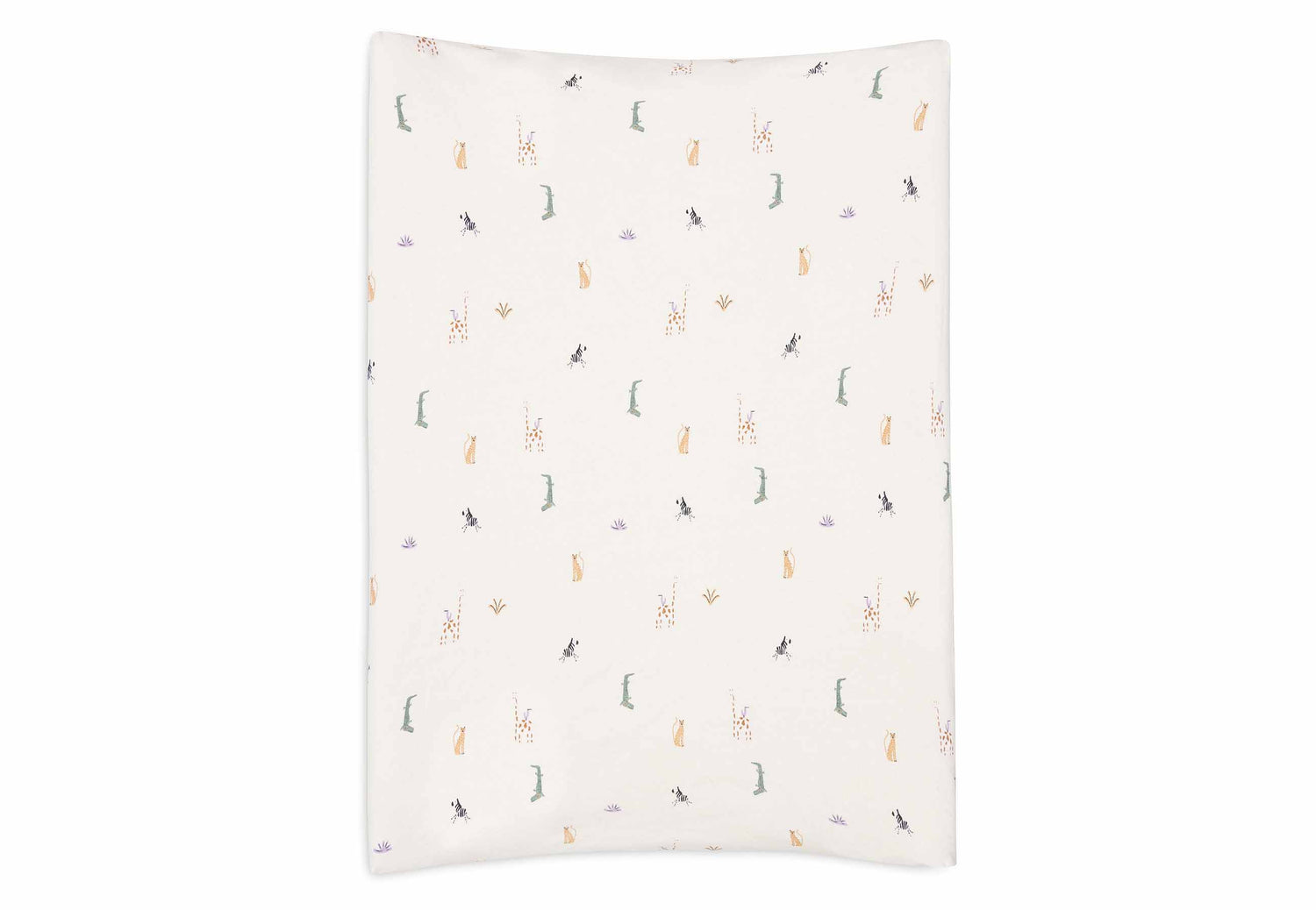 Haal de jungle in huis met deze geweldige Jungle Jambo aankleedkussenhoes! Gemaakt van zachte Jersey stof en versierd met zebra's, cheetahs en girafjes is deze hoes echt een aanwinst. De hoes blijft door de elastieken band aan de achterkant goed om het aankleedkussen zitten. Je zult merken dat je van aankleedkussenhoezen nooit genoeg zal hebben. Je vervangt de aankleedkussenhoes in elk geval één keer per dag en vaak zelfs meerdere keren per dag.