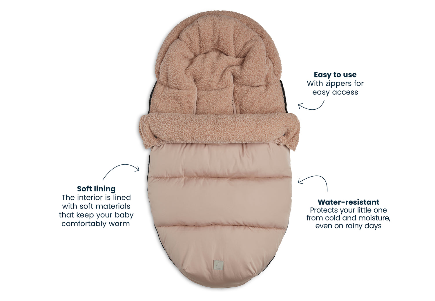 Houd jouw kleintje lekker warm met de voetenzak voor de buggy/wandelwagen van Jollein. Een echte musthave voor de koude winterdagen. Deze voetenzak heeft openingen voor een 3 en 5 punts gordel, zodat de gordels van de buggy of wandelwagen er doorheen kunnen. Je kunt de voetenzak openen met de rits, welke beide kanten op te gebruiken is zodat je jouw kleintje gemakkelijk in en uit kan halen. Aan de achterkant van de voetenzak zit een handige kap zodat je deze om de hoofdsteun van de buggy kan vouwen. Op deze manier blijft de voetenzak goed zitten. De voetenzak is waterafstotend zodat je kindje lekker warm en droog zit! Voor welke kleur ga jij? Deze voetenzak heeft geen TOG-waarde, omdat de voetenzak bedoeld is om je kleintje warm te houden onderweg en niet als slaapzak.