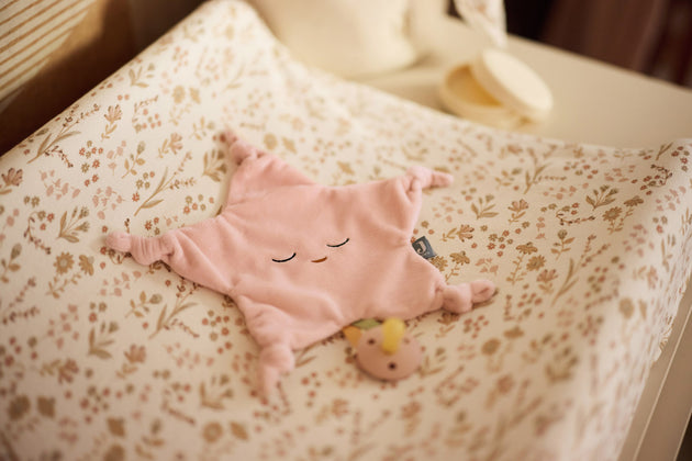 Geef je aankleedkussen een schattige touch met deze lieve Bloomy aankleedkussenhoes! Gemaakt van superzachte jersey stof in zachte beige tinten en versierd met lieve bloemetjes, brengt deze hoes een vleugje gezelligheid in de babykamer. Dankzij de elastieken band blijft alles mooi op zijn plek. Ideaal voor dagelijks gebruik—je zult zien dat je nooit genoeg aankleedkussenhoezen kunt hebben!