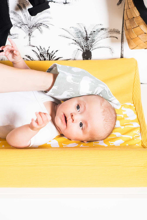 Een aankleedkussenhoes wordt gebruikt om je aankleedkussen te beschermen tegen vlekken bij ongelukjes. Je kunt hem ook gemakkelijk uitwassen. Naast de praktische kant staat een hoes ook mooi in het kamertje. Kies jij okergeel, groen of grijs?