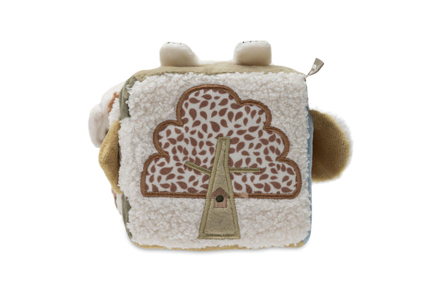Deze zachte activiteitenkubus uit de Tiny Park collectie is een betoverend speeltje voor je kleintje. Met schattige dieren zoals een kat, hond en uil en interactieve elementen zoals knisperende oortjes en een spiegel, stimuleert het de zintuigen en motorische ontwikkeling van je baby. Een vrolijke en leerzame kubus, perfect voor urenlang speelplezier in de box of onderweg!​