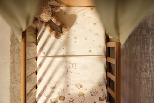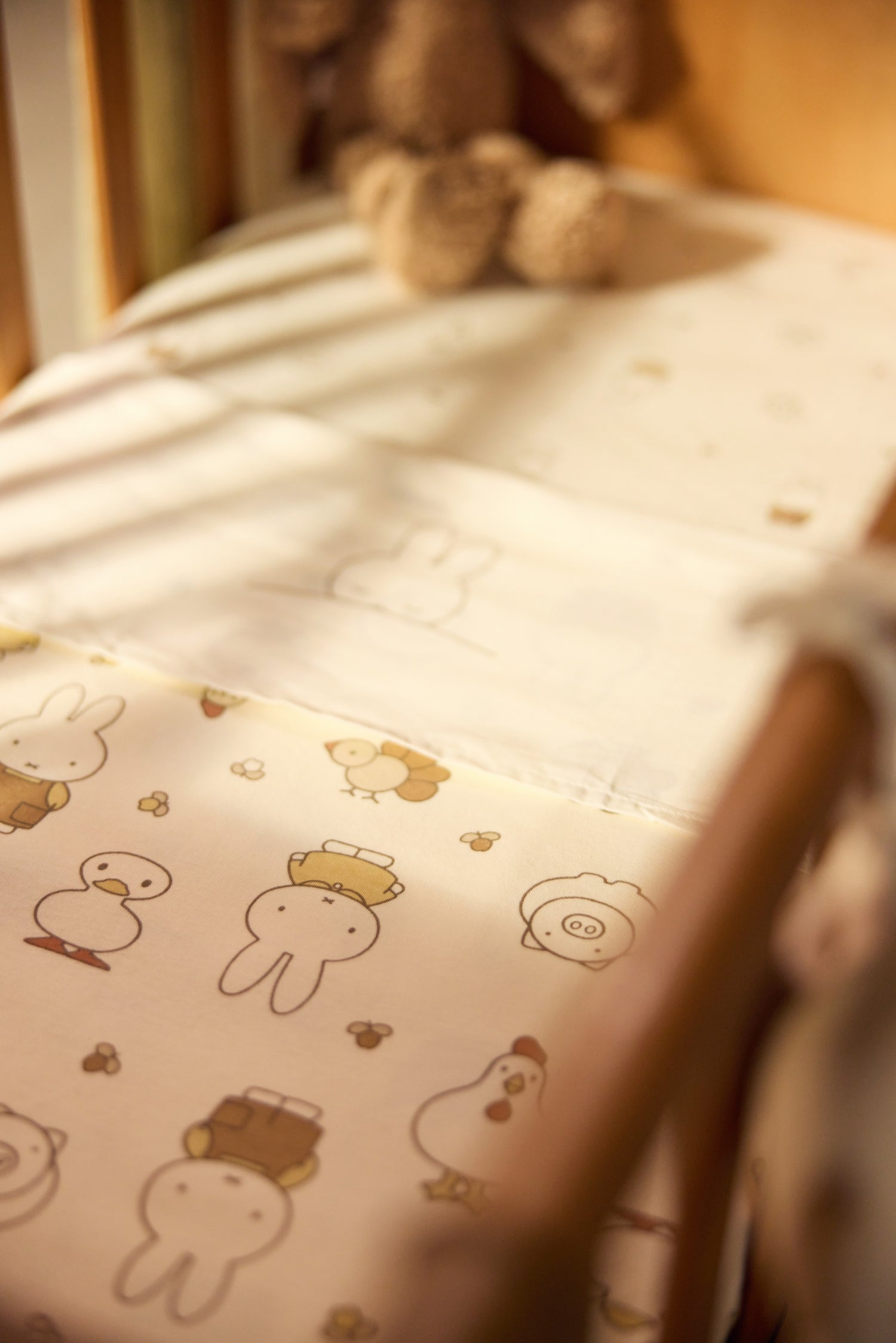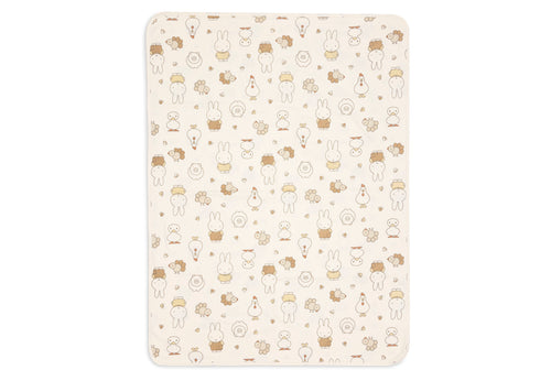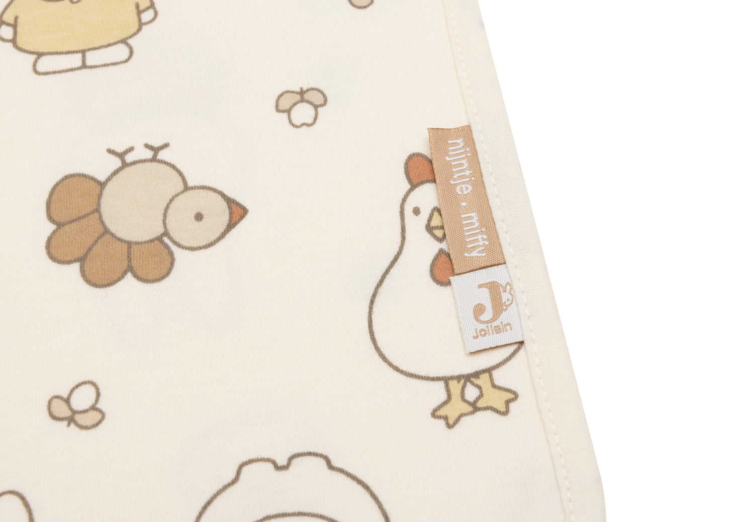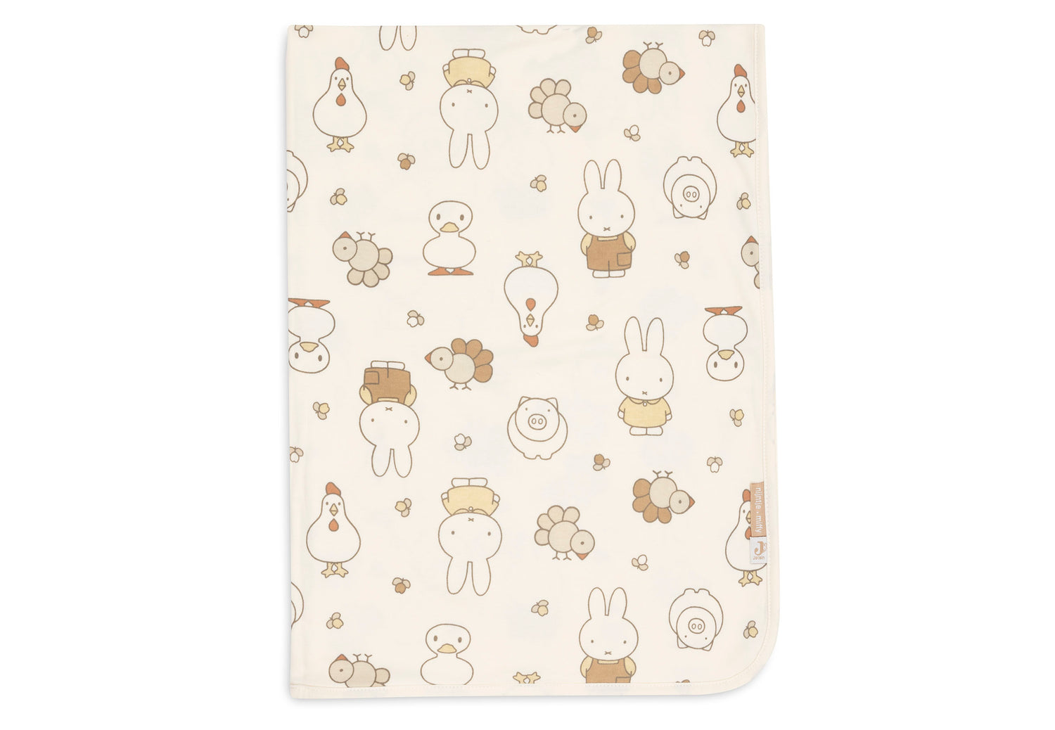 Dit lieve dekentje uit het Miffy Family Farm thema is versierd met een all-over print van Miffy en haar boerderijvriendjes. De zachte jersey stof en de rustige oatmeal ondergrond in combinatie met warme tinten geven het dekentje een tijdloze en knusse uitstraling. Perfect om het wiegje mee op te maken en eenvoudig te combineren met andere items uit het Miffy Family Farm thema. Een perfecte toevoeging aan de babykamer!