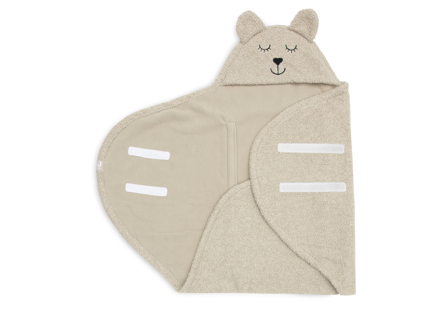 Wikkeldeken met gegarandeerd mega hoge cutenessfactor. De stof is van fluffly vachtlook aan de buitenkant en heerlijk comfortabel zacht aan de binnenkant. Wikkel je baby in deze omslagdoek en sluit de deken met de praktische klittenbandstroken. Zet het mutsje erbij op en zie daar, die schattige oortjes en dito berengezichtje op het mutsje. Echt te lief! Deze omslagdoek is te gebruiken vanaf de geboorte. En ook heel handig te gebruiken in baby’s eerste autostoel. De gordels van de autostoel kun je door de openingen in de deken halen waardoor je baby lekker in de omslagdoek kan blijven zitten. Het is een universele wikkeldeken voor de Maxi Cosi en elk ander merk categorie 0 autostoeltje met drie of vijfpuntsgordel. Verkrijgbaar in diverse kleuren.